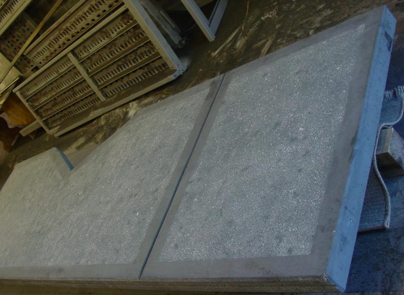 Sandgestrahlter Beton kann auch mit Edelmetallen oder mit Holz kombiniert werden z.B. Balkone, Brüstungen, Treppen usw.